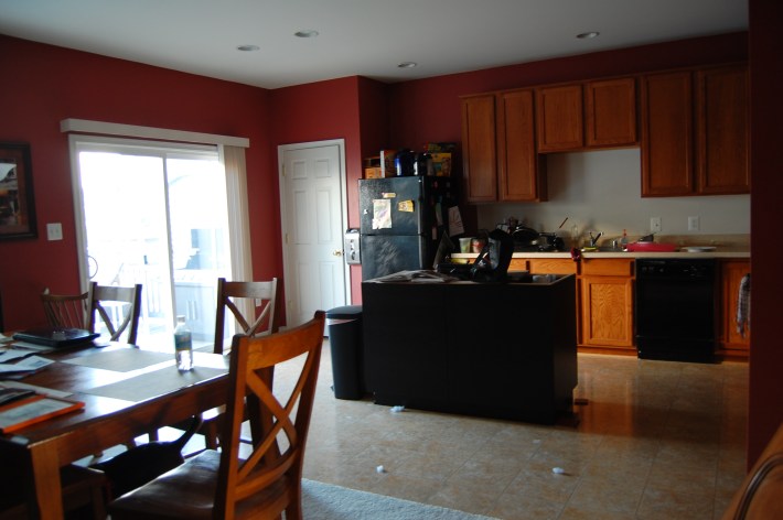 This is my kitchen. Excuse the fluff balls on the floor from my beagle Samson We’re putting in an island (in search of a granite counter top currently), hardwood, backsplash, and…